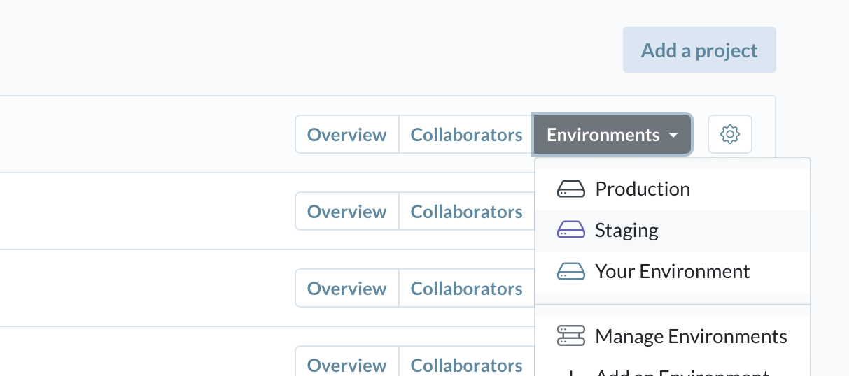 You can never have too many projects or environments, and you never have to worry about having too many. Keeping features organized is easier than ever.